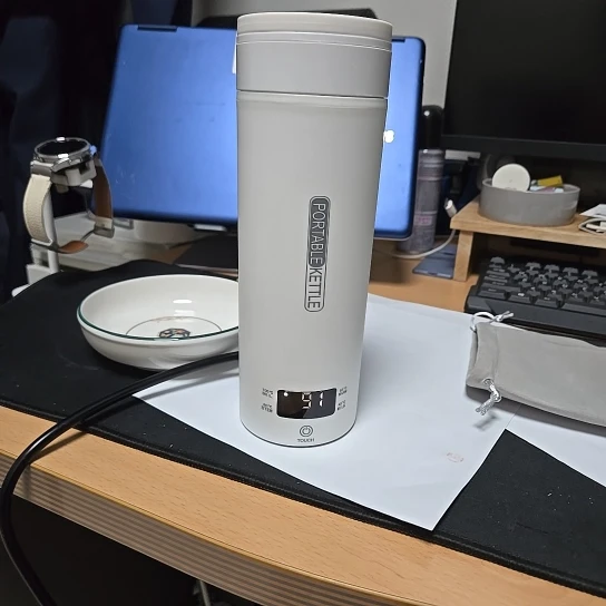 I had already bought one that I put to work. So good that this one will go in my van when I move. I've been using the first one for over a month at work, 4 times a day, never disappointed. I set it to 55°C and it takes a little over 5 minutes to heat up. However, I've only used it for water.